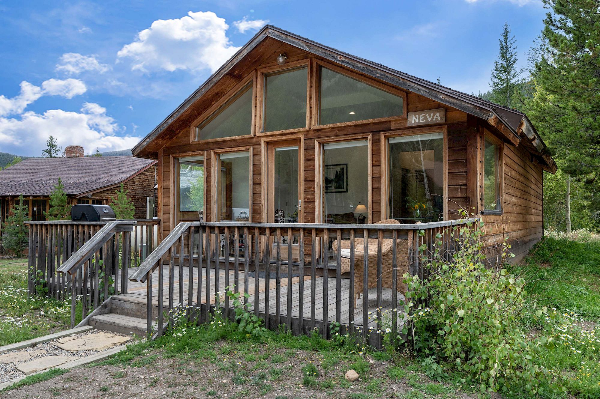 Large front deck with outdoor propane grill and patio chairs